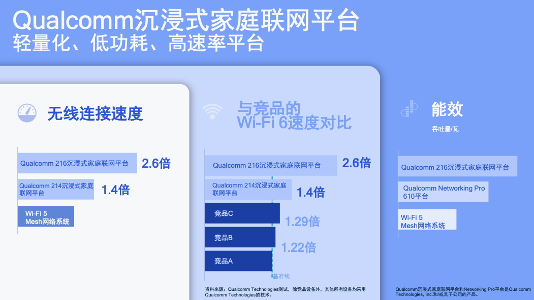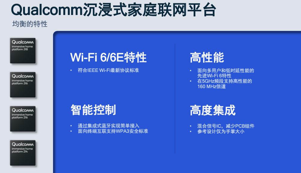 「高通沉浸式家庭联网平台」同样支持多用户流量管理技术,能平衡和支持现代智能家居之中的所有 Wi-Fi 联网设备,让各个智能家居硬件都能获得完整的网络体验,支持新兴的时延敏感型应用。