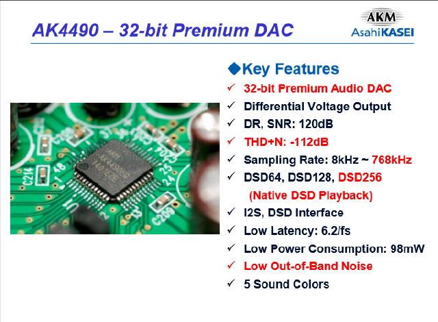 不难看出,AK4490指标真的很高:PCM 32bit/768kHz DSD 11.2MHz,而且售价并不像ESS9018那么高冷不亲民。