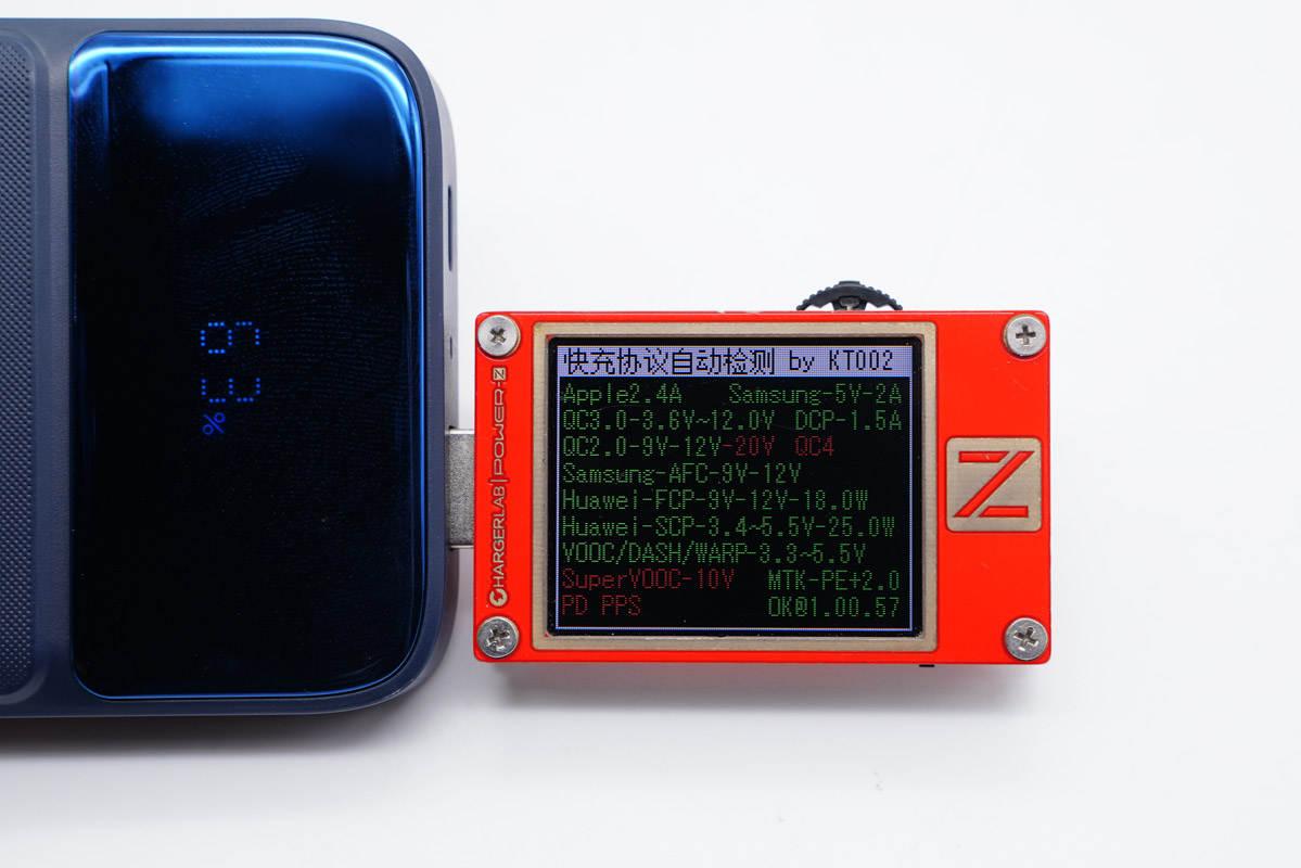 使用ChargerLAB POWER-Z KT002测得C口支持Apple 2.4A、Samsung 5V2A、DCP协议,以及QC2.0/3.0、AFC、FCP、SCP、PE2.0、PD3.0、PPS多个快充协议。