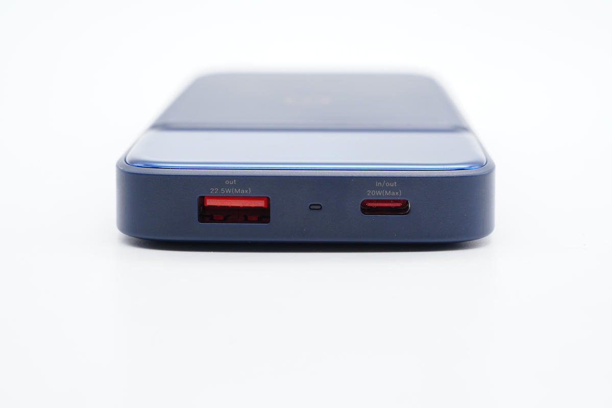 顶部设有1A1C接口,USB-C口支持双向快充,两个接口间还有一颗指示灯。