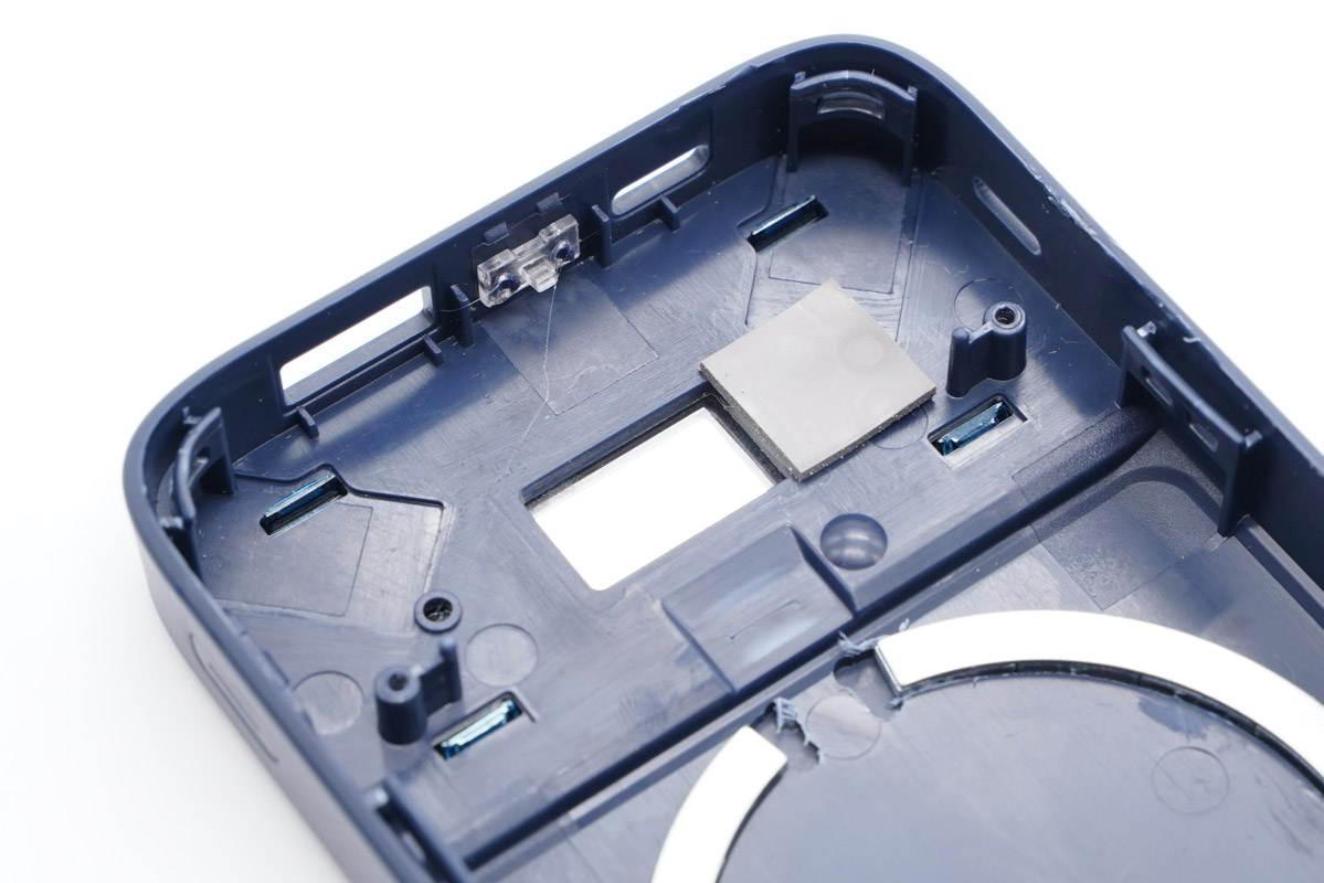 将机身壳拆开,卡扣进行封装固定,外壳上贴有泡棉,用于对电芯进行缓冲保护。