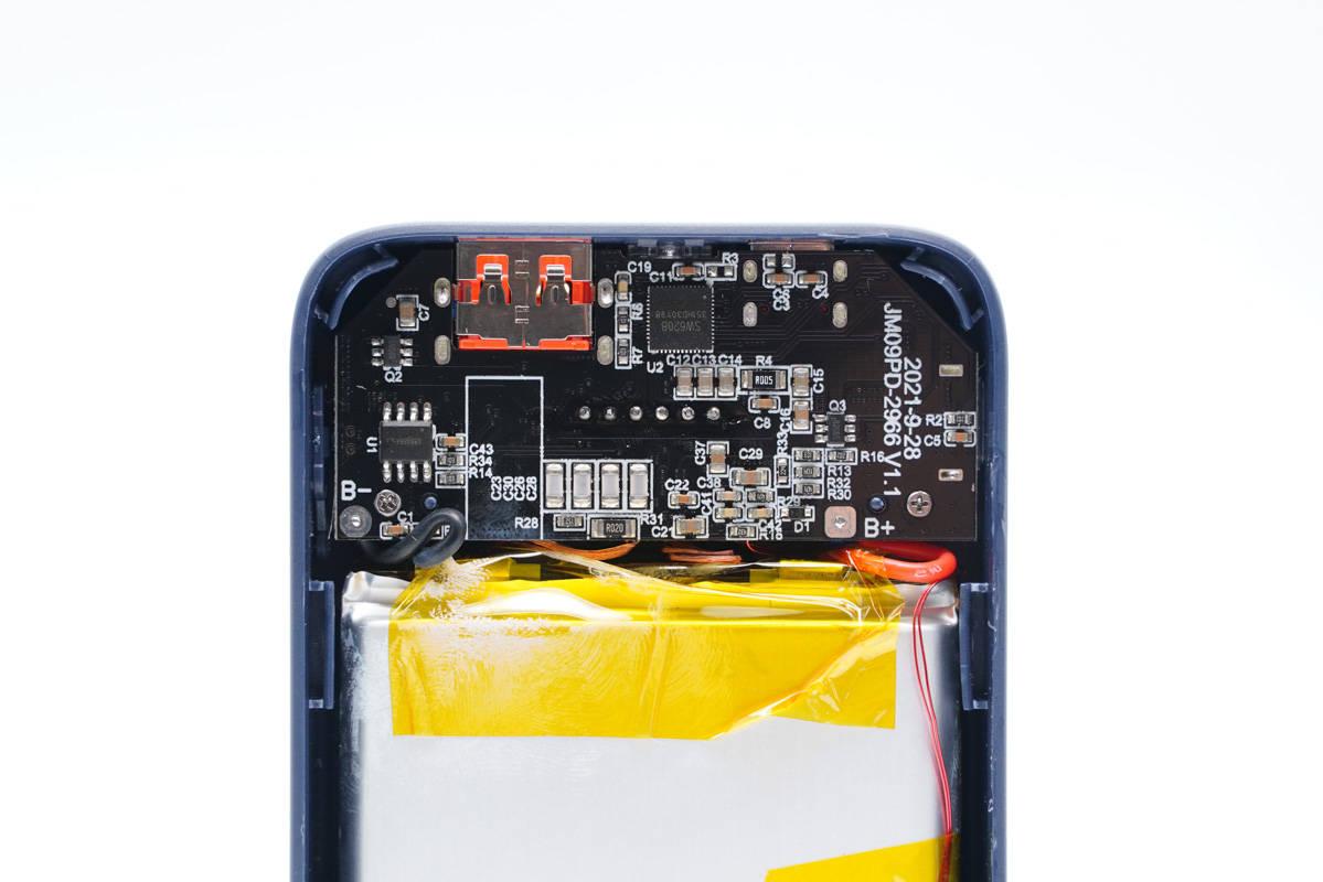 此外头部区域还有一块导热垫,帮助移动电源主控芯片散热。
