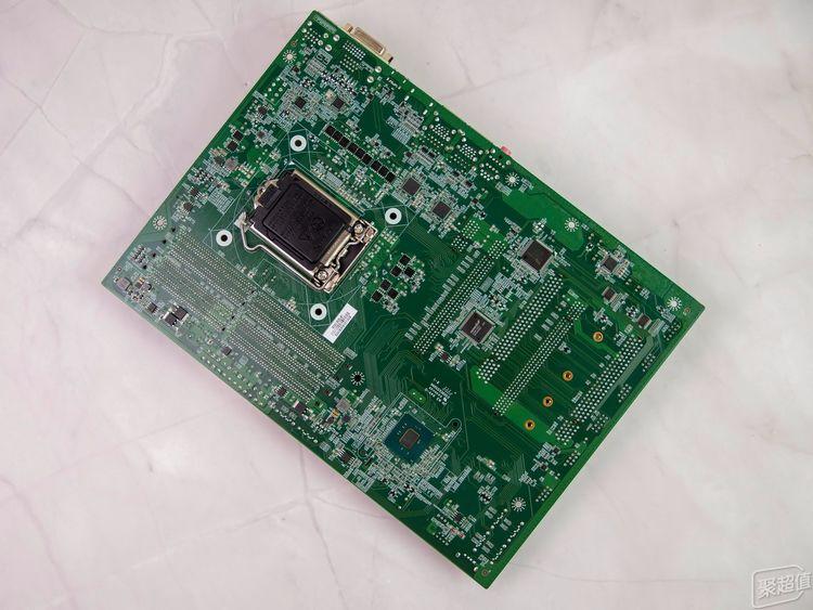 然后来看看益德EDAC-Q270双极主板的背面,可以看到,原本应该比较干净的背面上,有许多的IC芯片。