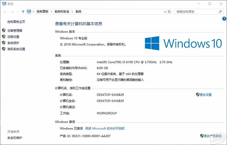 进入系统,将所有驱动都装上,各种硬件正常识别,CPU是I3-6100,3.7GHz,内存是8G。
