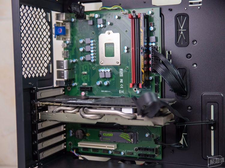 其他过程略过,整体装起来正面看起来比较空旷。原本想整个显卡试试,不过后来发现这张闲置的显卡有些问题,又拆了下来了,还是核显好了。