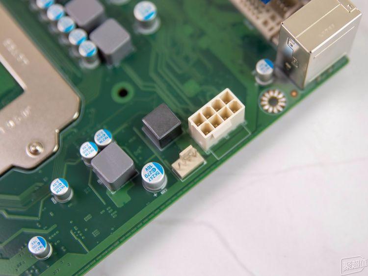 CPU的供电插座是8 Pin的,在CPU供电插座左侧还设计有一个PWM小4 Pin插座,这是用来连接散热器风扇的。