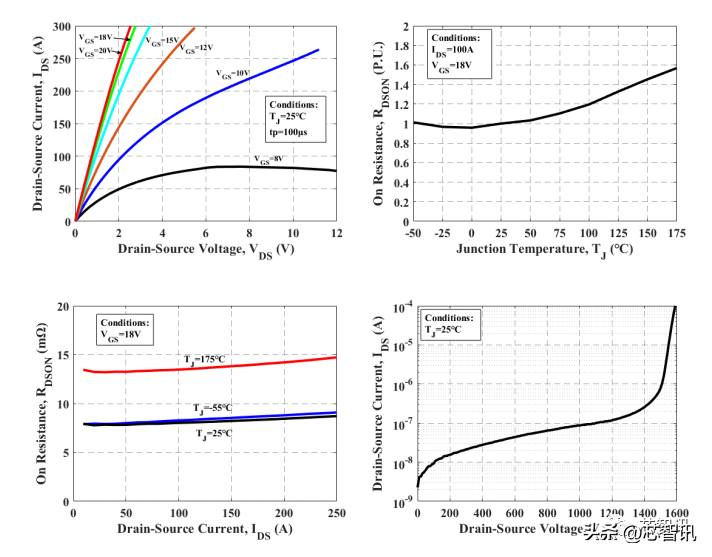 对于SiC MOSFET来说,导通电阻是一项重要的性能指标,反映了器件在导通状态下的损耗和效率。在1200V的工作电压下,SiC MOSFET通常具备更低的导通电阻,可以实现更高的功率密度和更低的能量损耗。