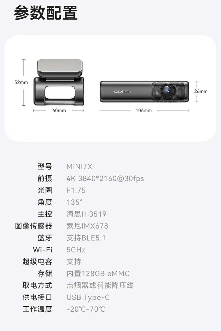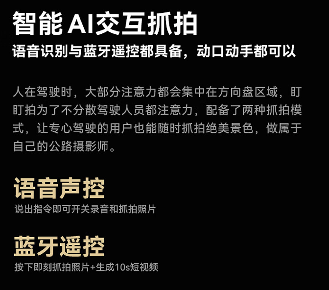 据介绍,这款行车记录仪配备 8MP 摄像头,搭载海思越影 AI ISP,支持 4K“黑光全彩”夜视,而在标准行车记录下,可记录 3840 x 2160 分辨率 30FPS 或“3K60FPS”视频。