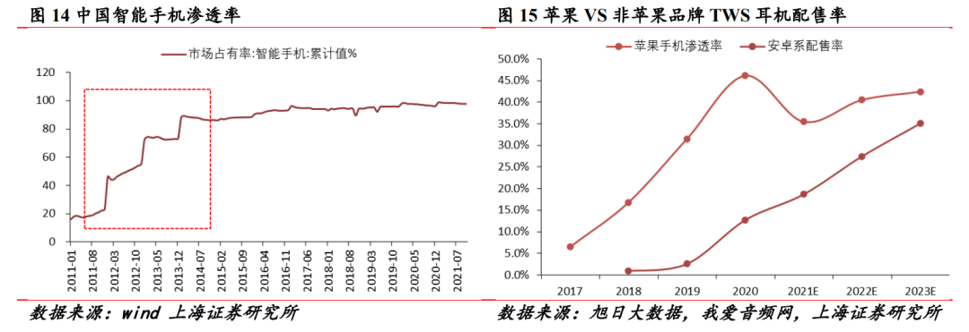 根据上海证券判断,接下来安卓阵营的耳机市场将迎来爆发,配售率同样也有上升到80%潜力。