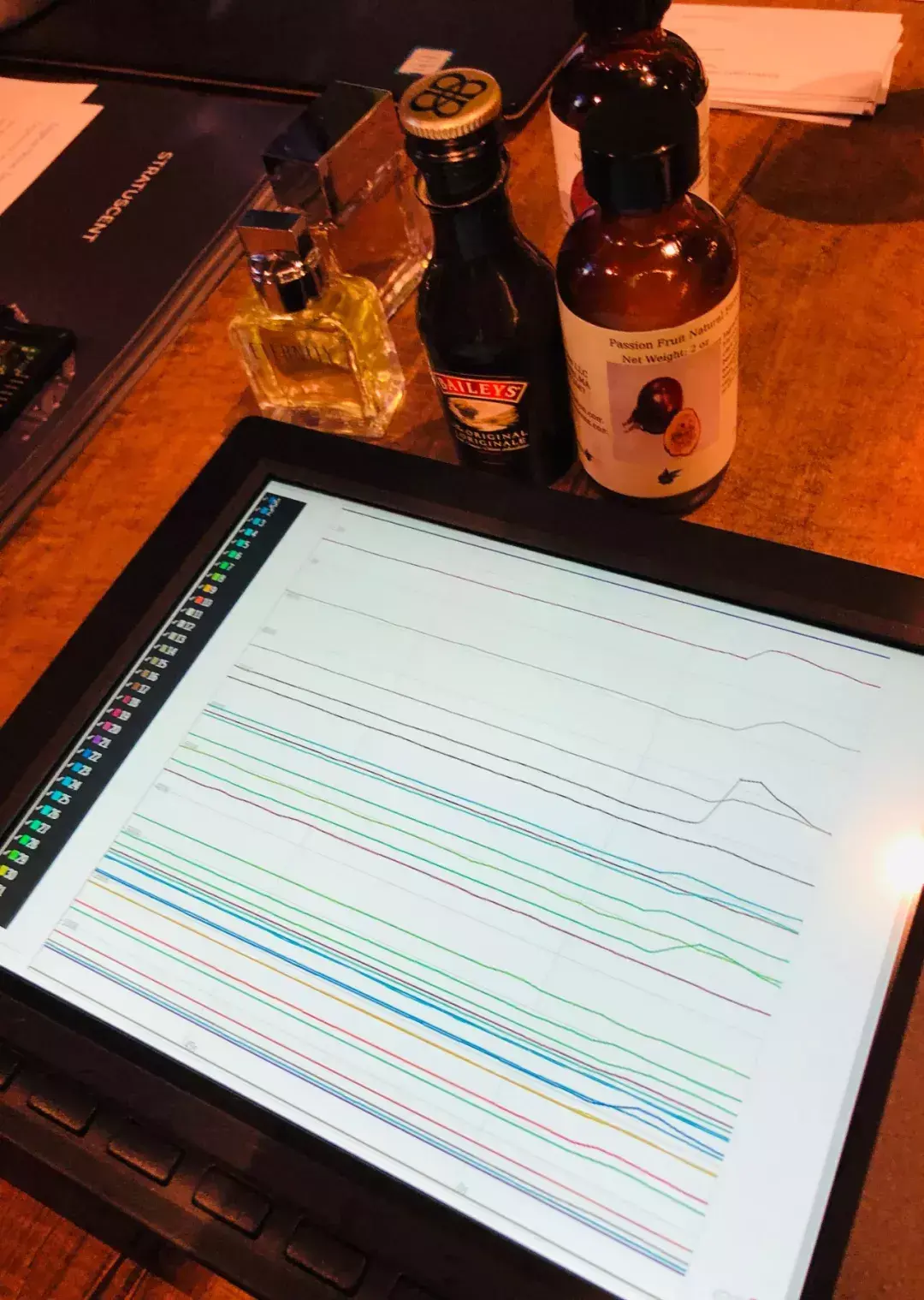 图:当芯片靠近有味道的东西,例如酒或香水,AI 就会实时侦测气体中有哪些化学物质(图片来源:DT 君)
