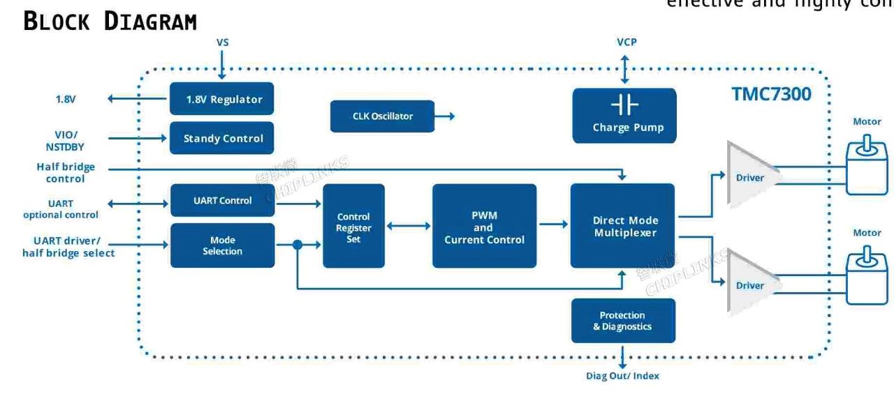 TMC7300包括一个单线UART接口,因此非常易于使用。