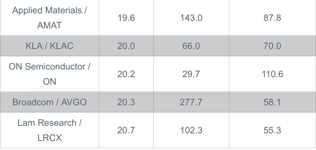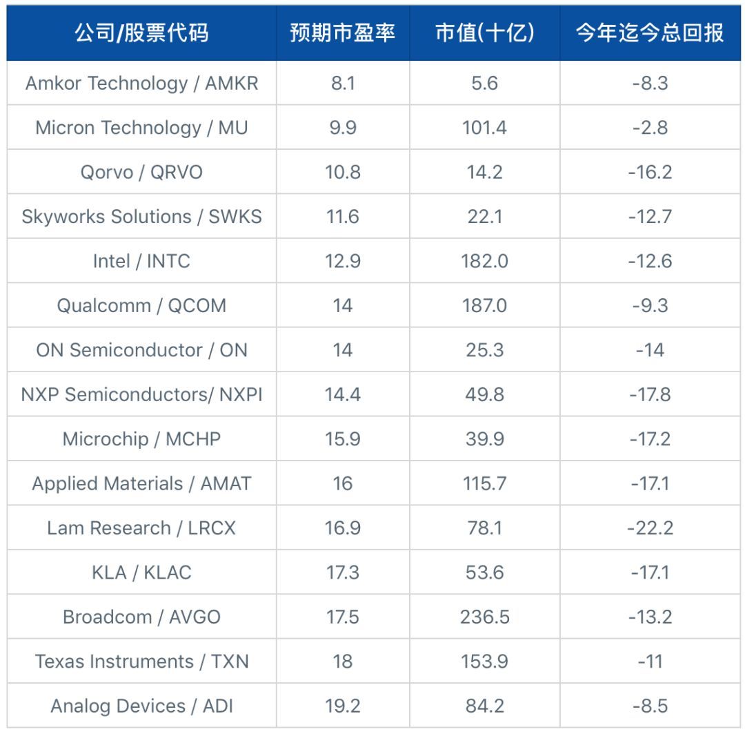 英特尔(INTC)的股价今年迄今为止下跌了12.6% ,该公司在两个表单上均排名第五。此前该公司的分析师日曾明确表示,英特尔长达数年的转型计划将耗资巨大。尽管如此,Raymond James的分析师克里斯•卡索(Chris Caso)还是将该股评级从“表现不佳”上调为“市场表现良好”,称他的看跌观点已经结束。排在第六位的是手机芯片公司高通(QCOM),该公司股价下跌了9.3%,尽管该公司的季度业绩超出了预期。安森半导体(ON)、恩智浦半导体(NXPI)、 Microchip(MCHP)、Applied Materials (AMAT)、Lam Research(LRCX)、KLA (KLAC)和 Broadcom (AVGO) 虽出现两位数跌幅但仍在榜单上。Analog Devices (ADI)和Texas Instruments(TXN) 分别下跌8.5%和11%,是新上榜的两只股票。Analog Devices上上周的收益报告是一个积极的信号,其中包括好于预期的预测。尽管Texas Instruments1月份的业绩好于预期,Raymond James分析师卡索本月早些时候还是将其评级从“跑赢”下调至“市场表现”,理由是认为该公司的支出计划增加了收益和现金流的风险。值得注意的是,这张表单更多的是一个起点,投资者可以从中发现被忽视的选择。便宜的股票之所以便宜可能是有原因的,而昂贵的股票如果增长前景改善,可能有很多上行空间。不过,在最近的回调之后,可能更容易发现便宜股。文 |《巴伦周刊》撰稿人康纳·史密斯(Connor Smith)编辑 | 吴雨婷翻译 | 小彩版权声明:《巴伦周刊》(barronschina)原创文章,未经许可,不得转载。英文版见2022年2月24日报道“15 Chip Stocks That Are Real Bargains. They Just Keep Getting Cheaper.”。(本文仅供读者参考,并不构成提供或赖以作为投资、会计、法律或税务建议。)