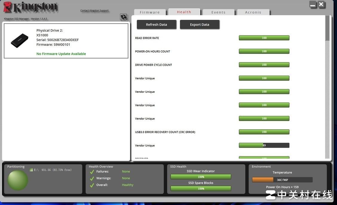 除此之外,金士顿还为自家的固态硬盘推出了专属管理软件金士顿SSD Manager,为金士顿旗下的固态硬盘提供诸如固件升级,剩余容量和运行温度、磁盘健康状态查看等功能,帮助用户随时关注自己固态硬盘的工作状态,非常实用。