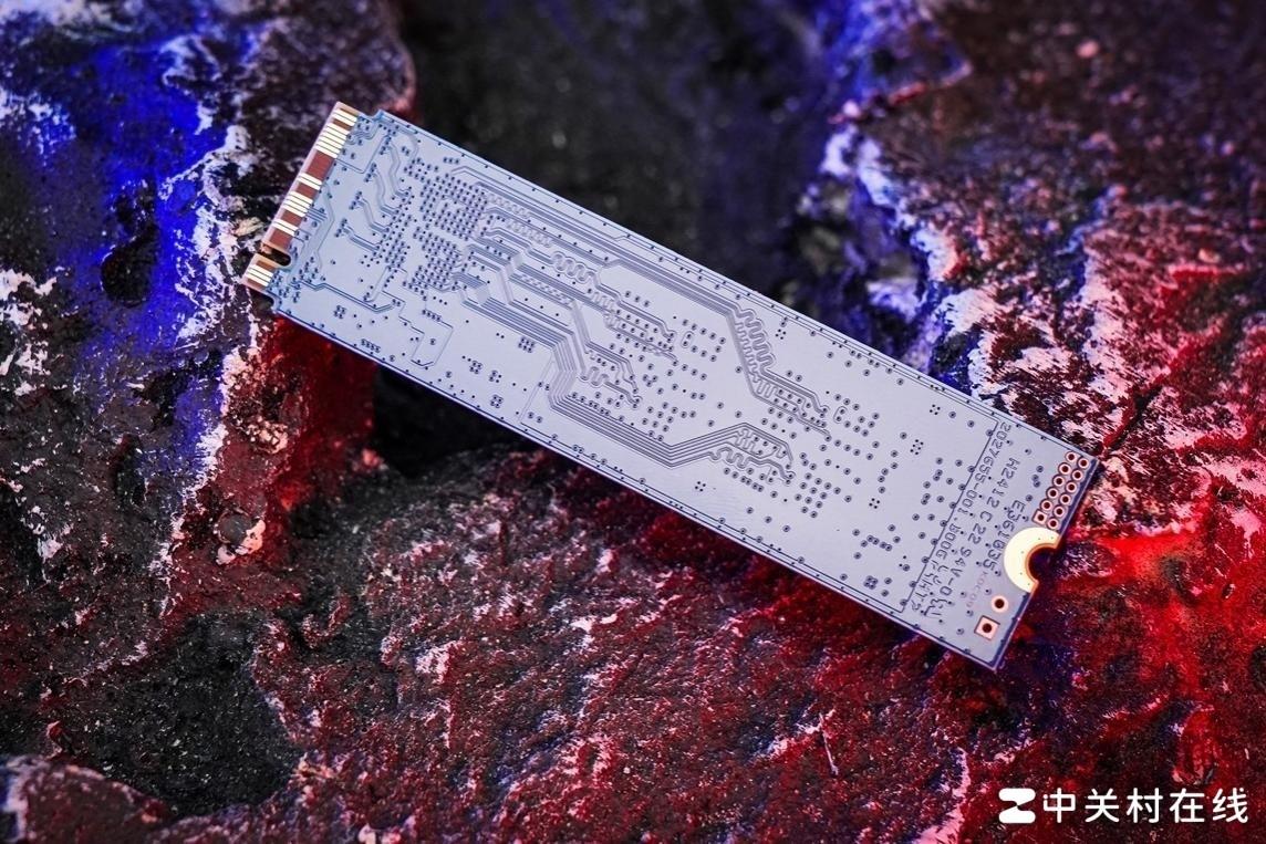 背面没有任何的元器件,以及空白的NAND颗粒焊盘,只有大面积的敷铜走线,这种单面芯片设计不仅对笔记本等狭小空间的设备有着更好的兼容性,而且发热量也更低。