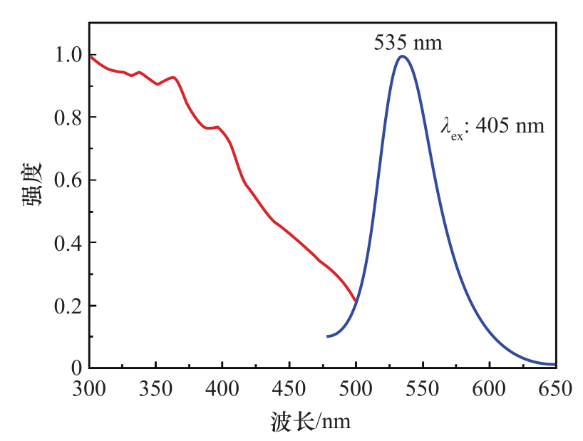 传统蓝色荧光粉 BaMgAl10O17:Eu2+ (BAM)的激发光谱位于 240~420 nm, 发射主峰位于450 nm [17]。由于半峰宽较窄、热稳定性不够,且在紫光范围内激光效率较低,这类荧光粉应用受到很大限制。