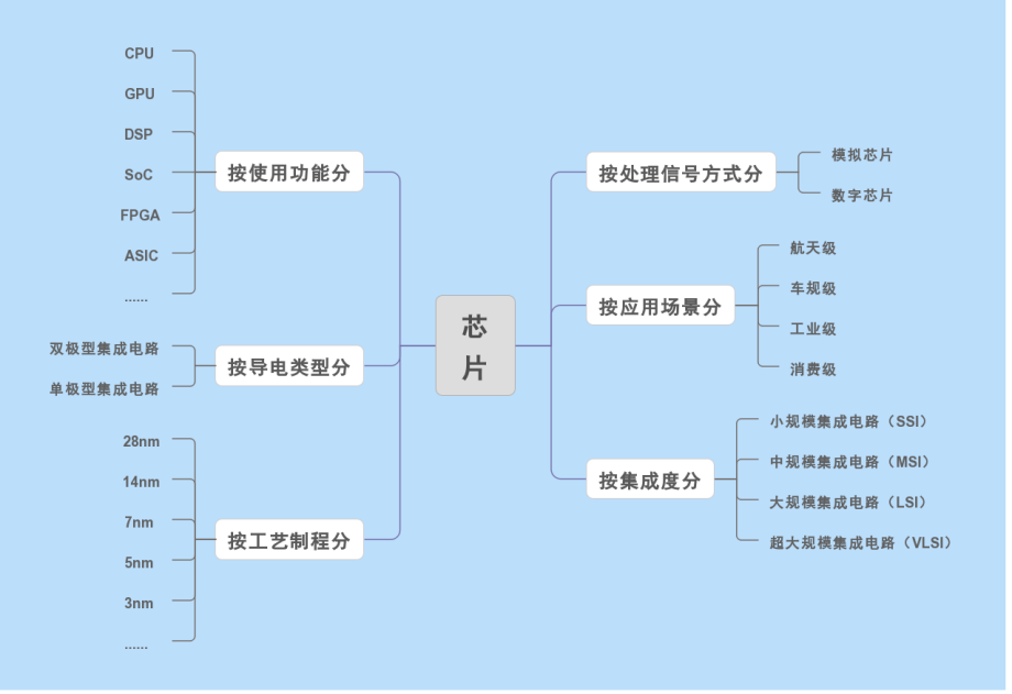 芯片按照不同的分类方式可以分为多种: