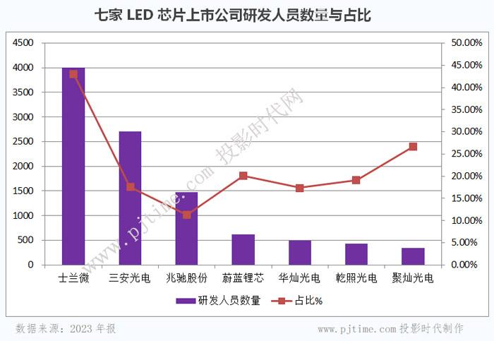 截止到4月底,三安光电、兆驰股份、聚灿光电、华灿光电、乾照光电、蔚蓝锂芯、士兰微七家主要涉及LED芯片和外延片制造的上市公司已经全部披露了2023年年度报告。LED芯片作为LED产业的上游,对行业起着风向标的作用,了解头部LED芯片厂商过去一年的发展脉络,不仅有助于了解LED芯片本身的发展现状,也有助于了解整个LED产业的发展大势。为此,Pjtime.com对七家LED芯片上市公司的2023年报进行了对比分析,与大家一起分享。