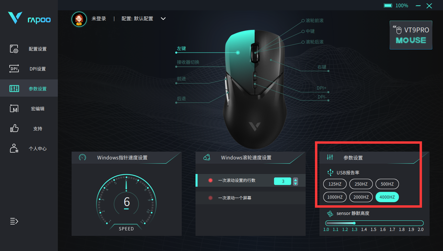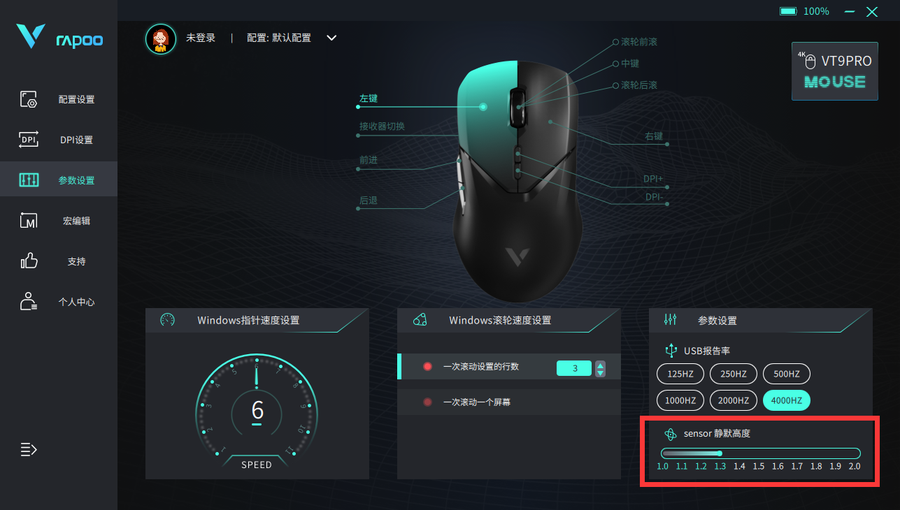 而因为雷柏VT9 Pro双模无线游戏鼠标采用的是雷柏定制的原相3395光学引擎,所以用户还可以在RapooGameDev驱动来对鼠标进行11档的静默高度选择,对不同材质的鼠标垫进行更进一步的适配,助力发挥出更好的状态。