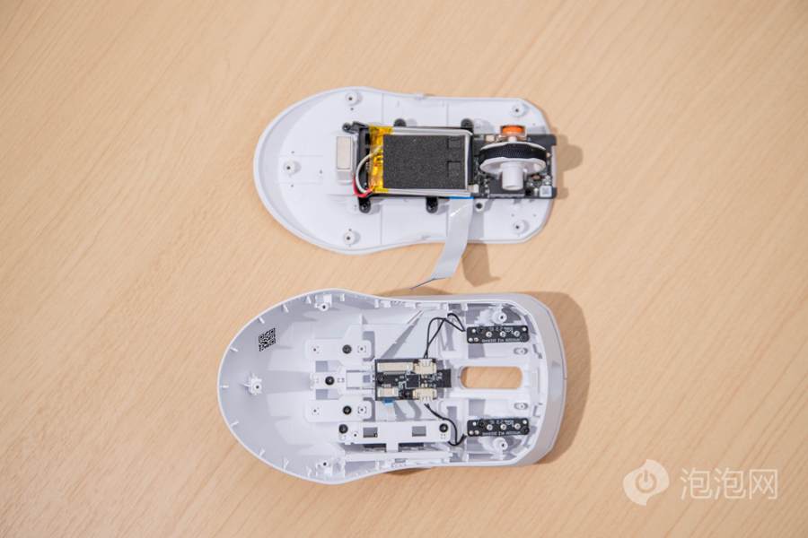 在打开鼠标内部后,我们可以看到雷柏VT9 Pro双模无线游戏鼠标在各部件上都粘贴了相关的二维码,这部分二维码是雷柏工厂内部的质量管理追溯标签,可见其作为知名外设品牌在产品质量管理流程有自身的一套完善标准。