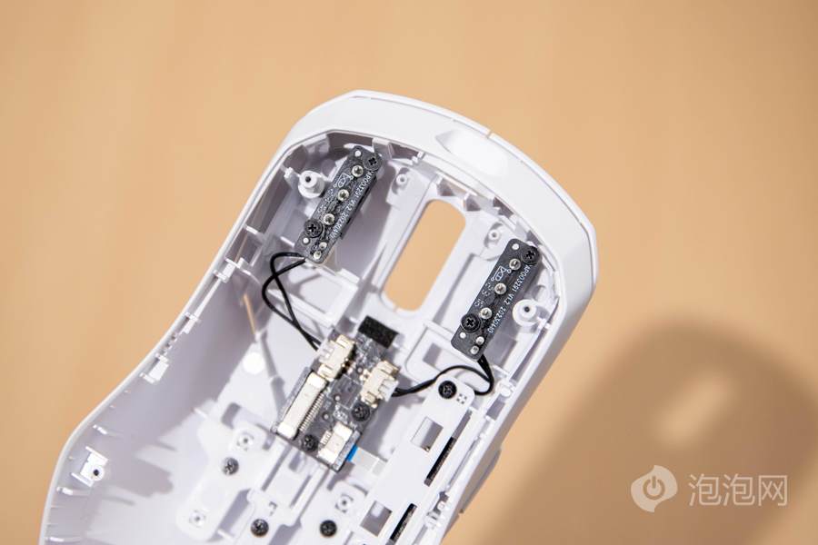 值得注意的是,雷柏VT9 Pro双模无线游戏鼠标所配备的C+click分离式按键预压校调技术还可进行自定义的调校。我们仅需拧下鼠标底部的螺丝,即可打开鼠标的内部来进行相关的操作。