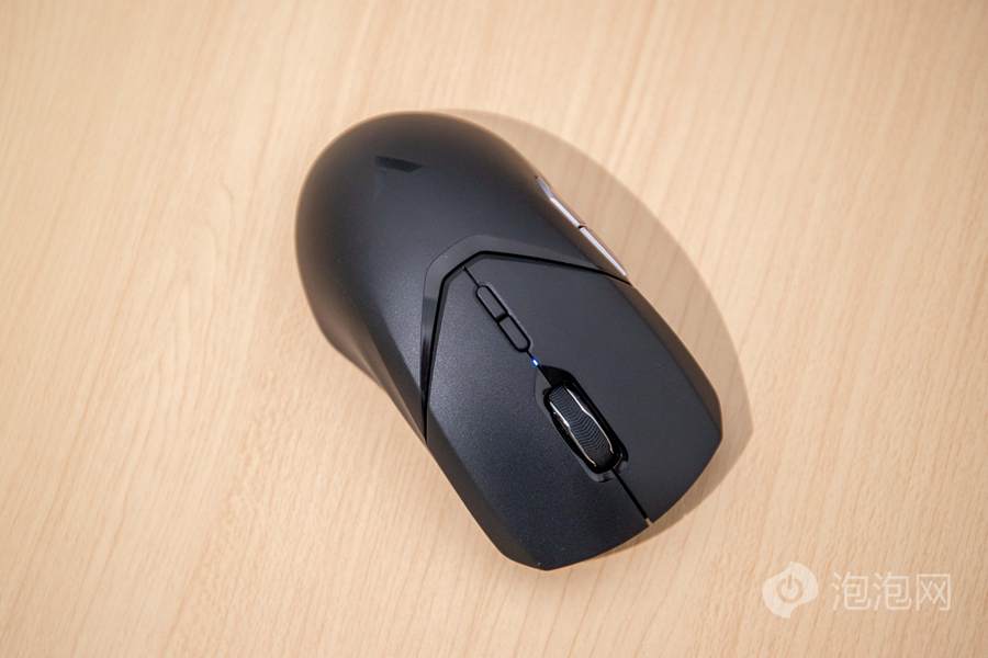 雷柏VT9 Pro双模无线游戏鼠标采用的是左右对称的设计思路,不过其在左侧加入了侧键,因此在使用上,更为适合右手进行握持使用。此款鼠标的三围大致为125*67*40mm,属于中大型鼠标的范畴。