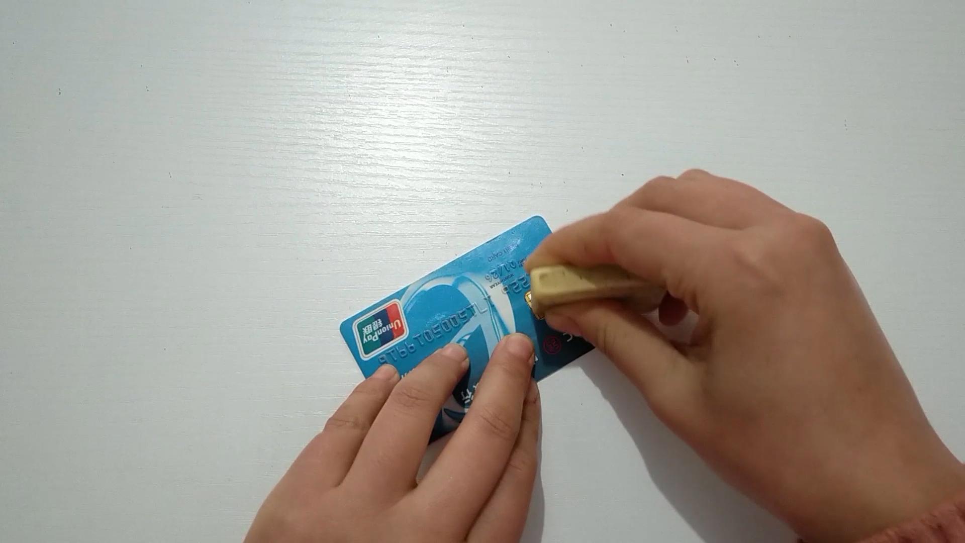 现在我们再来说一下芯片银行卡如何恢复磁性,这个也非常简单,我们准备一个橡皮擦,然后在芯片的地方来回摩擦几下就可以了恢复磁性了