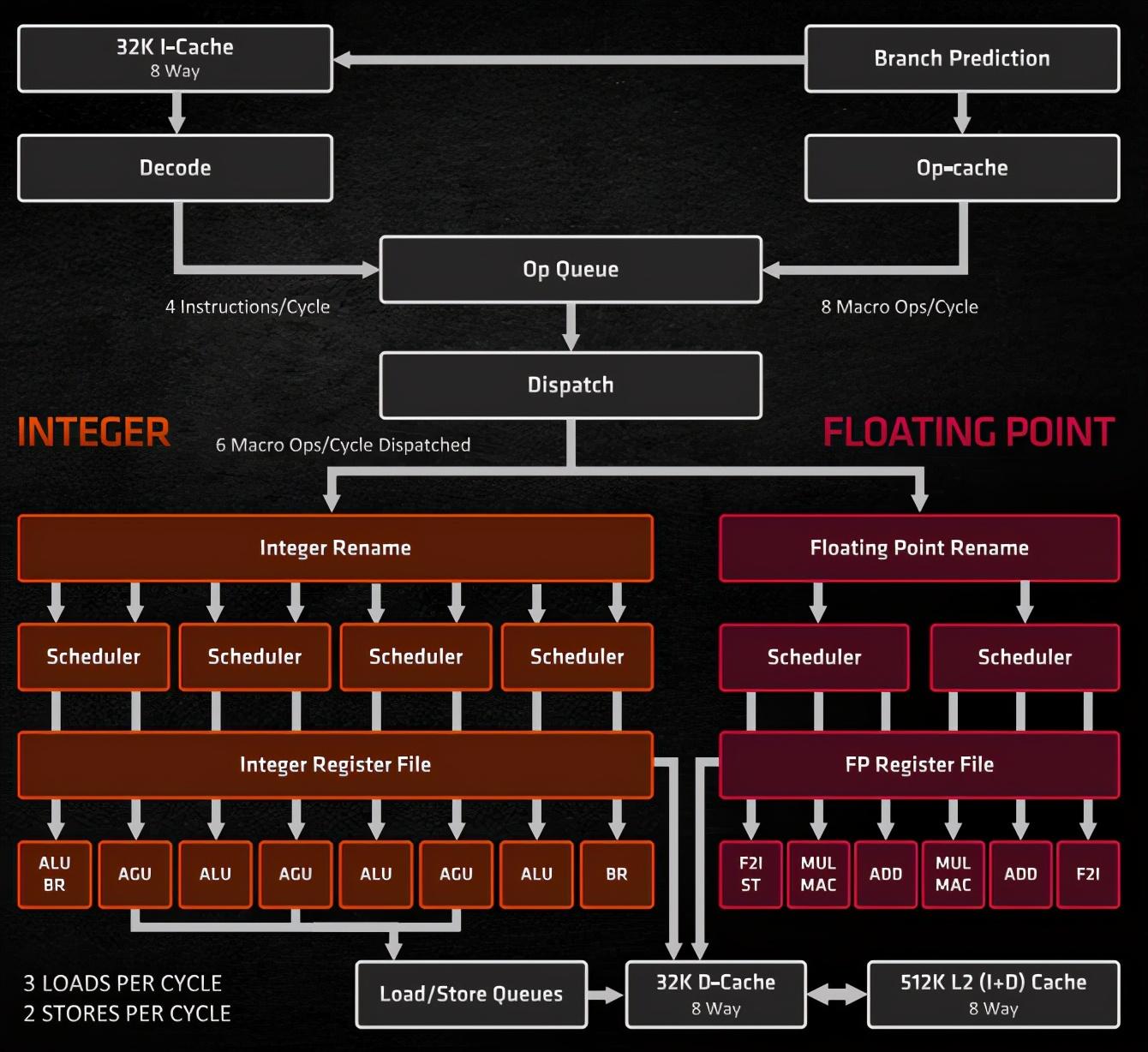 但这并不代表64位CPU的所有总线与寄存器都是64位的,不同类型的寄存器也可以有着不同的位宽,上面说的64位CPU的整数寄存器位宽是64位没错,但浮点寄存器就不一样了,比如奔腾MMX处理器所引入的MMX指令集开创了x86处理器支持SIMD操作的先河,该指令集定义了8个64位的浮点寄存器,而奔腾MMX本身只是个32位处理器。1999年推出,同样只有32位的奔腾3处理器新增了SSE指令集,与之配套的是8个128位寄存器,而后来的AVX2与FMA指令集可支持256位的运算,浮点寄存器也扩大到256位,目前CPU内部最大的是AVX-512指令集所用的512位寄存器。