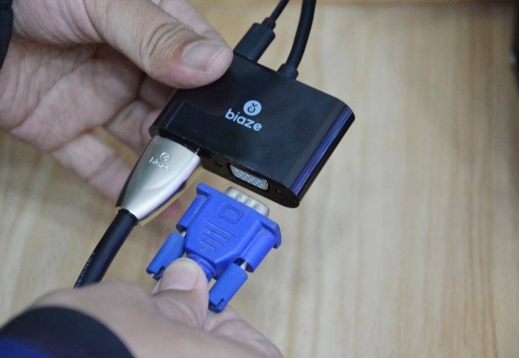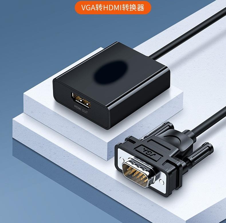 VGA是模拟信号,HDMI是数字信号,转化需要编解码,普遍为下图这个样子,图中HDMI端黑盒子内就是编解码装置,需要注意的是,连接显示设备需要额外加一条HDMI线缆。