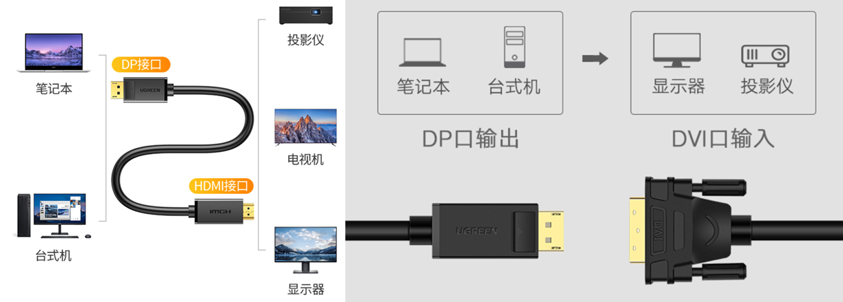 首先是DVI-D转HDMI,这种情况比较常见,直接无脑买下图的转接线,或转接头+HDMI线即可解决,而且支持反向连接。