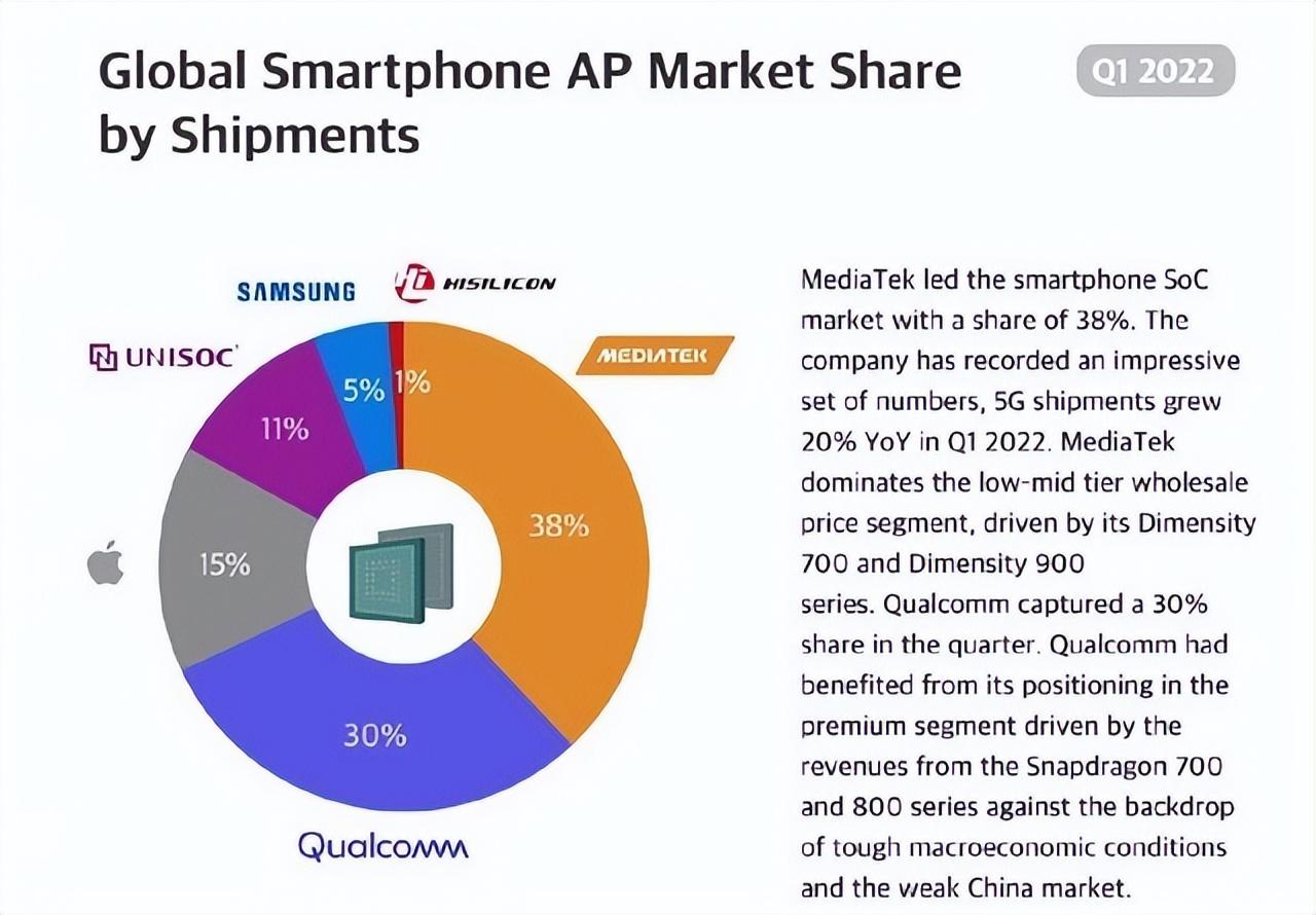 2022年第一季度全球手机芯片市场份额公布 联发科连续7季度第一