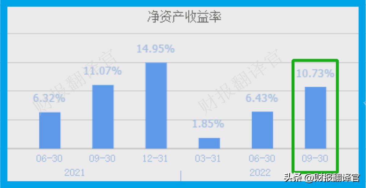 在今年第三季度,这家公司除了规模大以外,赚钱的能力也很强。净资产收益率是衡量一家企业盈利能力最有效的指标,它是净利润与股东权益的比值。