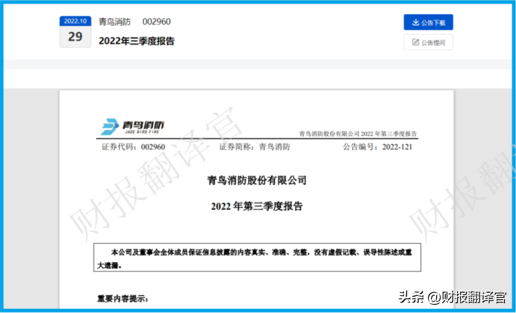 而本文既没有推荐青鸟消防这只股票,也没有说青鸟消防公司有多么的好,而是精炼翻译该企业的财报。