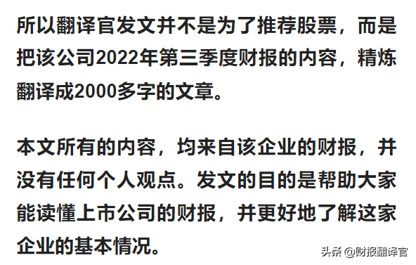 (文章的最后翻译官会告诉大家该企业的名称和股票的代码,请先客观中正地了解完公司的基本情况,再去揭晓最终的答案)