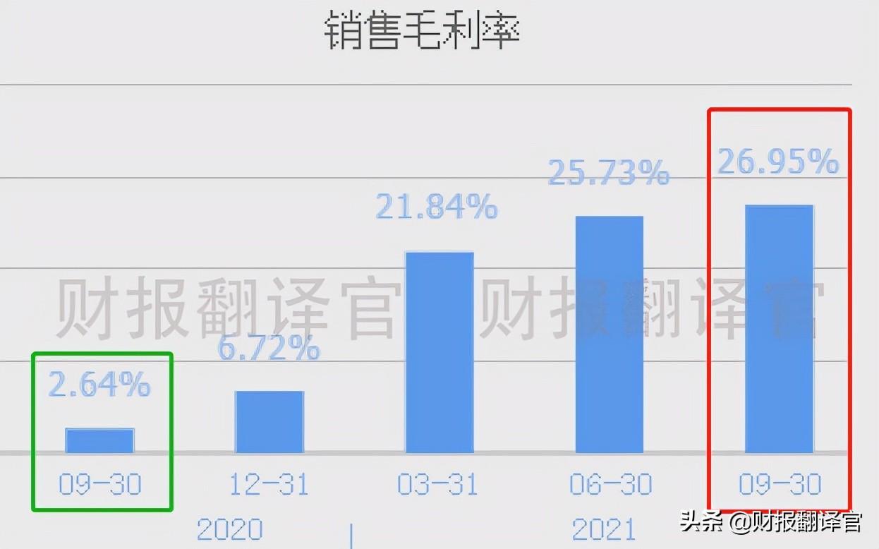 到了2021年第三季度,该企业同样销售100元的太阳能电池外延片,却能赚到26.95元的毛利润,销售毛利率达到了26.95%,同比增长了921%。