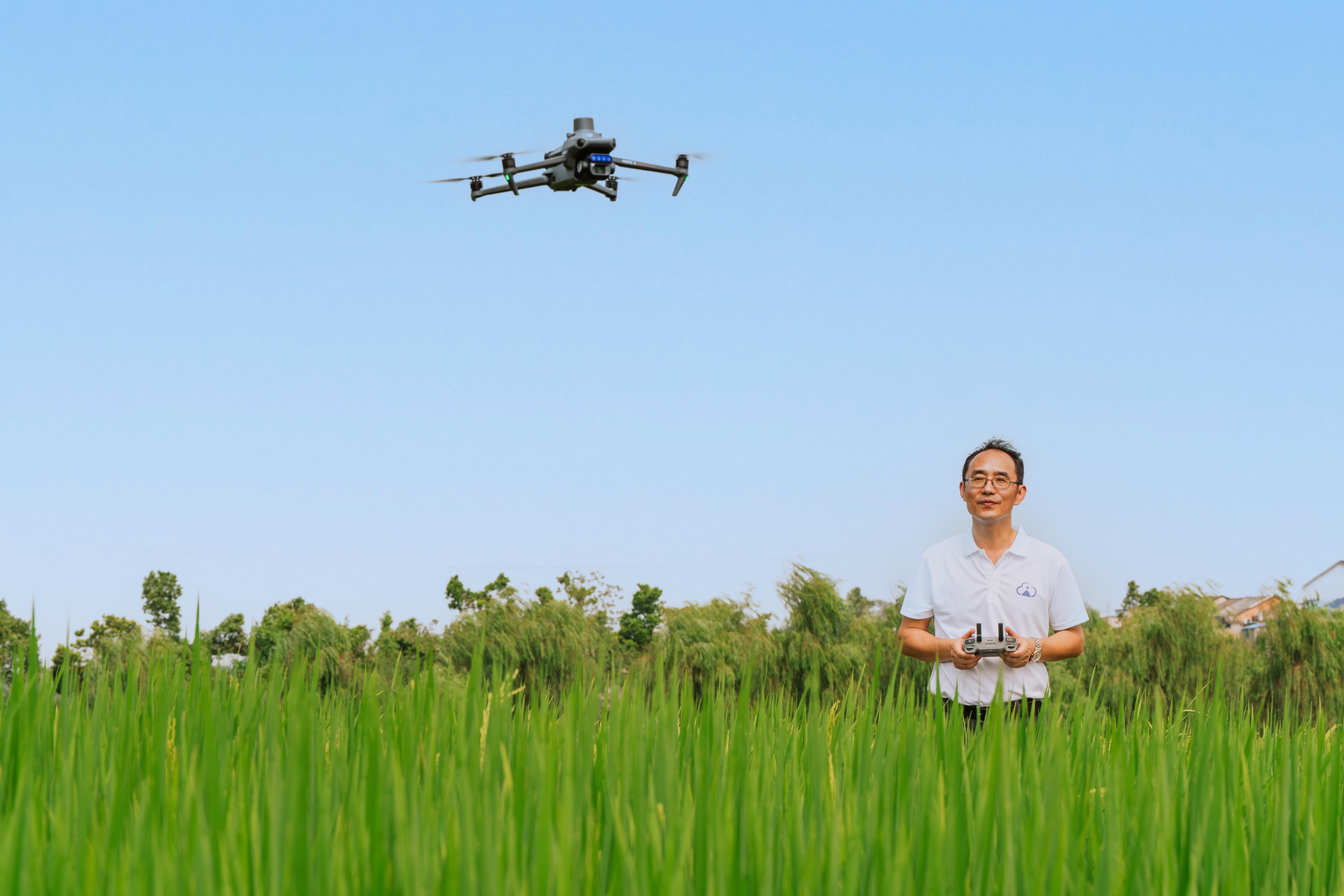 星城8月,热浪滚滚。刻着“长沙关山研发基地”字样的石碑后,千亩稻田呈现出一片浓厚的绿意。这里是隆平高科重要的水稻试验田,田间,工作人员拿起手机,同时飞着无人机,不再需要纸笔,“咔嚓咔嚓”,照片就将数据记录在“育种助手”软件中。