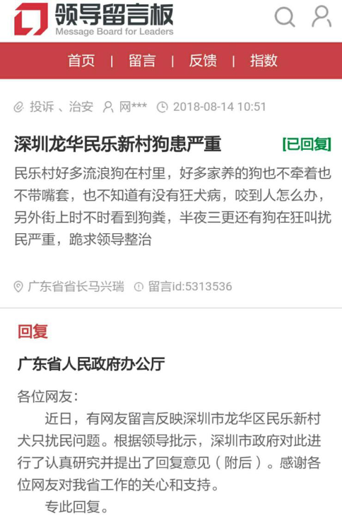 今年一月初刚从禁养犬名单中解禁的中华田园犬(俗称土狗)是城中村的“常客”,而习惯于散养犬只的行为更导致治安薄弱的城中村成为“狗患”多发之地,于是经常可以在深圳各区的领导留言板上看到诸如此类的投诉。