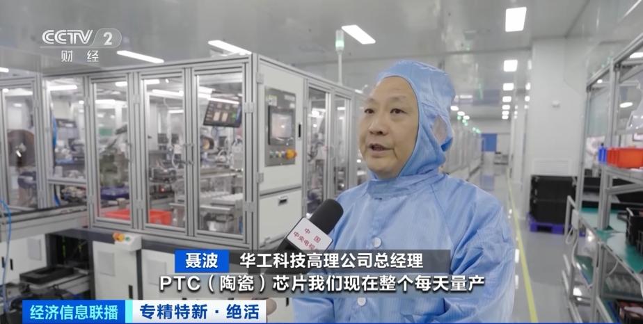 华工科技高理公司总经理 聂波: (PTC陶瓷)芯片是我们的核心技术,PTC(陶瓷)芯片我们现在整个每天量产已经达到300万片。