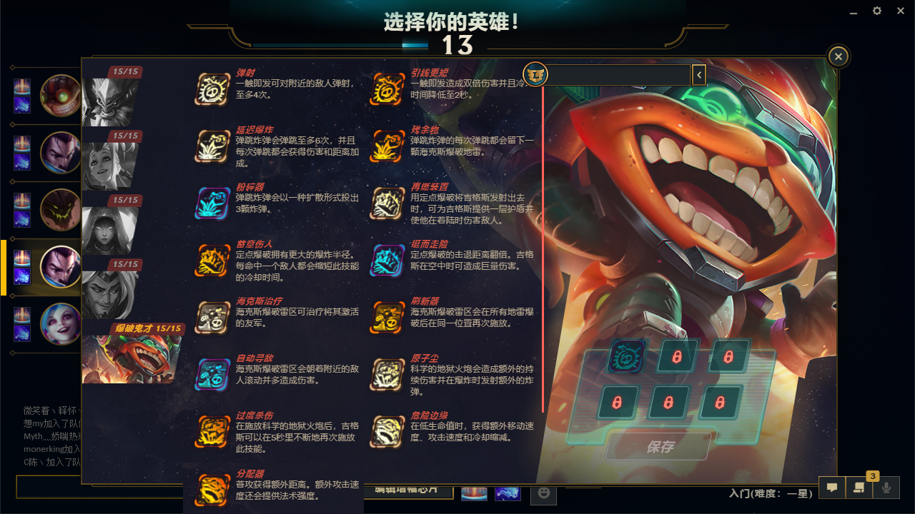 5.奥德赛淬炼模式炸弹人芯:原子尘,海克斯治疗,过度杀伤,粉碎器,刷新器。玩的最少的英雄,灵活性和技能不确定性让众多玩家不想这此模式中尝试吉克斯,不过如果你玩腻了其他英雄,可以尝试此套芯片试玩炸弹人