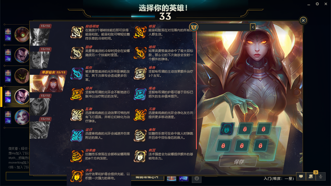 3.奥德赛淬炼琴女芯片:绿洲,协奏曲,攫命,串联,祷告等。可奶可攻,选择辅助奶的话就出香炉和时光等半肉装保护C位,想自己C的话就出巫妖卢登,关键是W使用要掌握,无论哪一种都要保证能救活队友。