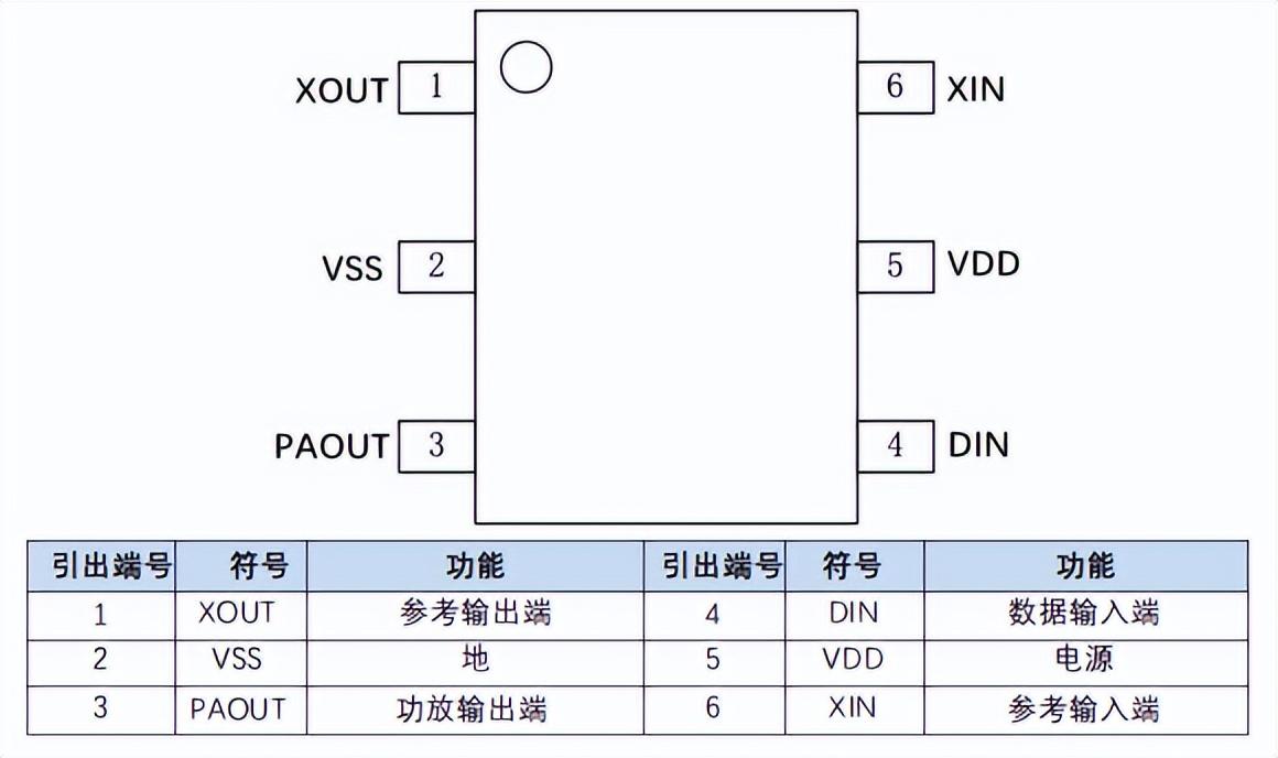 XL4456 型 315/433M 无线发射电路是一款低功耗、高性能、宽工作电压、大输出功率的433MHz 短距离无线通讯发射机电路,支持 ASK 调制方式,它所有的调谐都可在芯片内自动完成。XL4456 短距离无线通讯发射机可应用于 315MHz/433MHz 低功耗、低成本短距离收发前端,支持ASK调制方式,由频率合成器(PLL)和功率放大器等电路组成。该芯片具有高集成度、低功耗性能,发射功率达到 12dBm。XL4456内部包含一个使能控制电路,当DIN=1时,PLL与PA处于工作状态;当DIN=0时,PA被立刻关断,PLL经过大约40ms的延时后被关断。