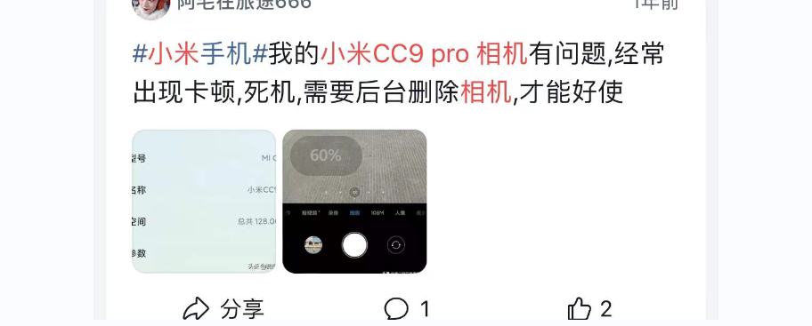 首先,超高像素传感器并未给手机成像画质带来质的飞跃,反而增加ISP的运算压力造成拍照卡顿和发热异常等问题,影响用户使用体验。不管是直接输出一亿像素照片还是像素多合一输出1200万像素照片,超高的像素短时间内极大增加ISP运算量,难以做到无感式拍照体验(即拍即得)。比如搭载一亿像素传感器小米 CC9 Pro就被部分用户吐槽拍照时取景器卡顿,快速点按快门会有一段等待的过程。