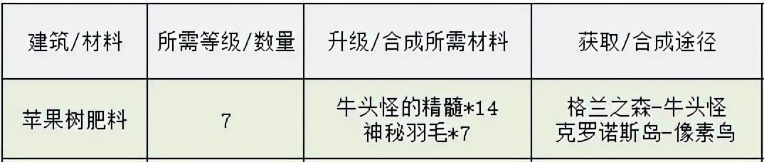 去克诺洛斯岛打像素鸟,收集七个像素羽毛后,在“卡妮娜的材料合成铺”合成7个“苹果树的肥料”。