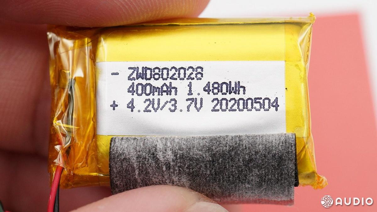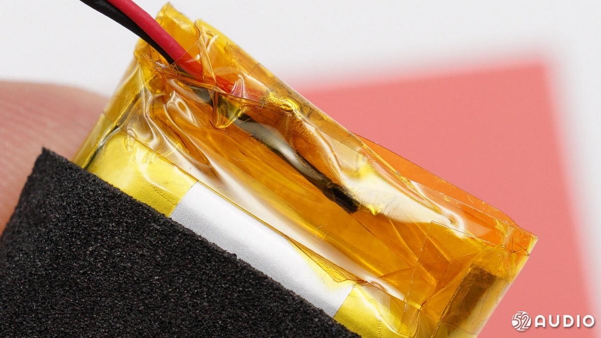 耳机采用的软包电池来自新余赣锋,型号GF541112,额定电压3.7V,容量0.148Wh。