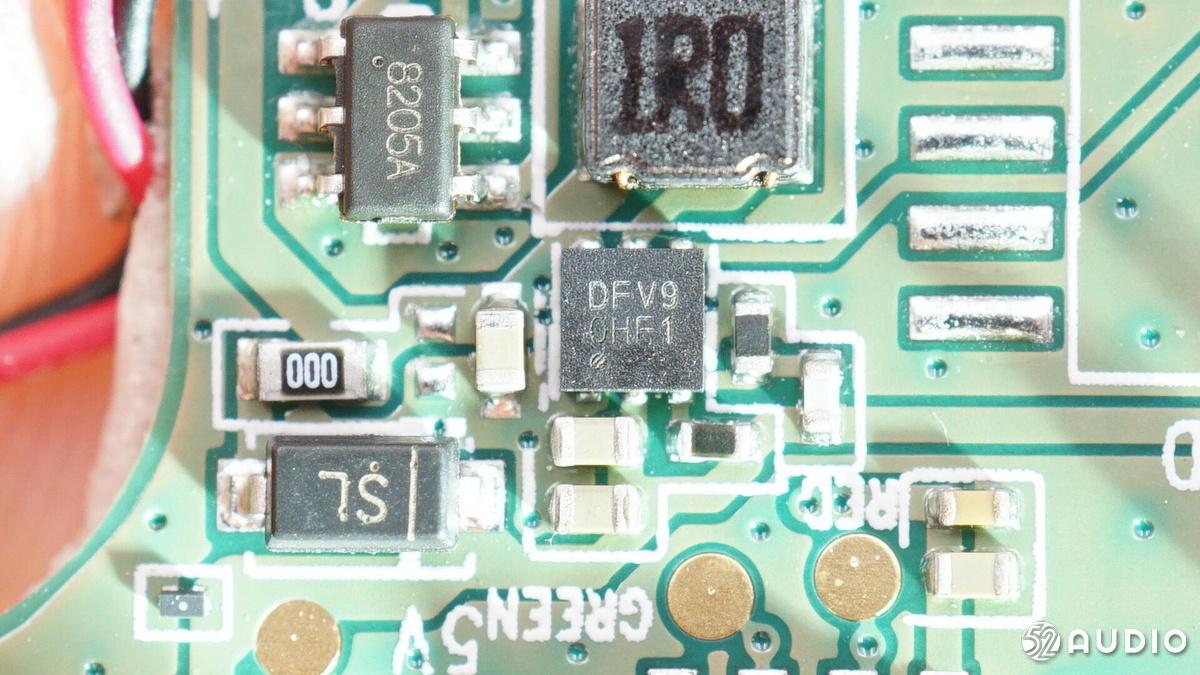 丝印DFV9的升压IC,将内置电池升压为耳机充电。