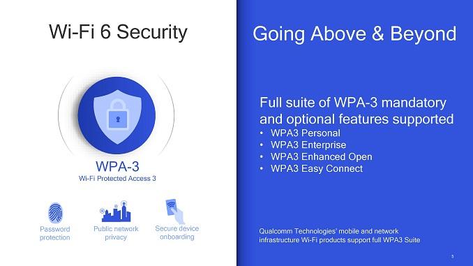 除了支持 Wi-Fi 6 的所有强制功能、以及诸多可选功能,高通还为 QCA6390 提供了对 WPA3 的支持(全套强制与可选功能):