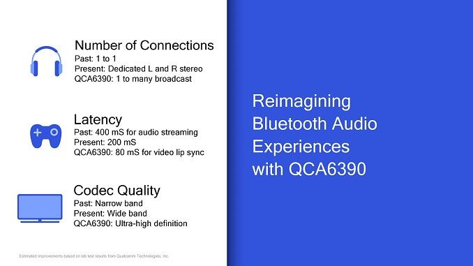 网络延迟与连接质量方面,高通称之可实现 80ms 的视频口型同步延迟(相当于视频的两帧多一点)。此外,新标准还包含了诸多高品质音频编解码器的支持。