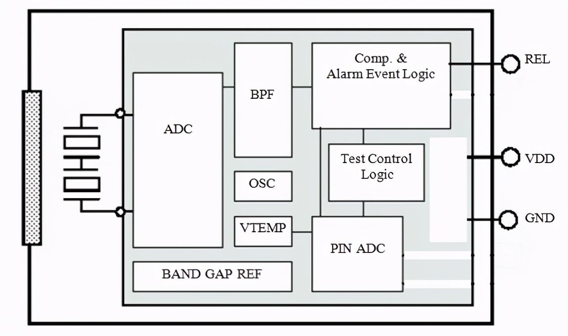 人体感应模块的工作原理为:人体探测敏感元将感应到的人体移动信号通过高阻抗差分输入电路耦合到数字智能集成电路芯片上,数字智能集成电路将信号转化成15位ADC数字信号,当PIR信号超过选定的数字阀值时就会有延时的REL高电平输出。反之,REL输出低电平。如下是PIR的内部工作原理方框图。