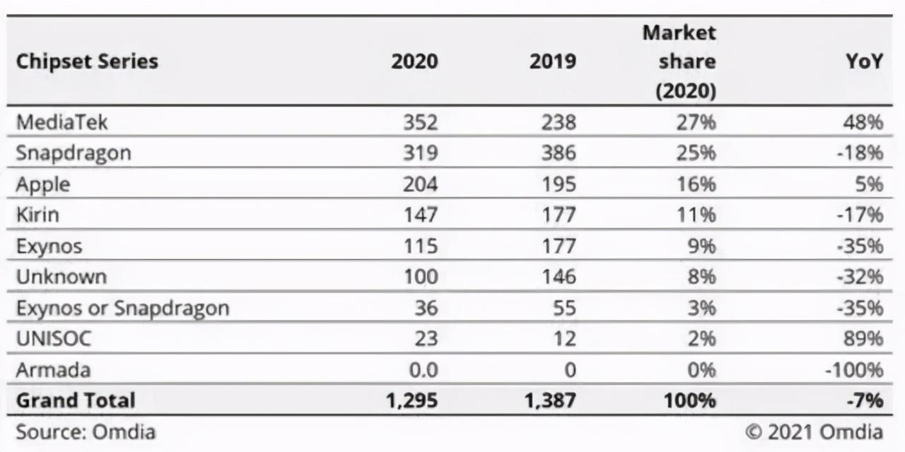 联发科以前一直被高通压着,进入5G时代后,终于打了个翻身仗。它的天玑芯片凭借物美价廉获得了各大手机厂商的青睐,2020年的出货量一举反超高通骁龙,成为全球手机芯片出货量的第一名。