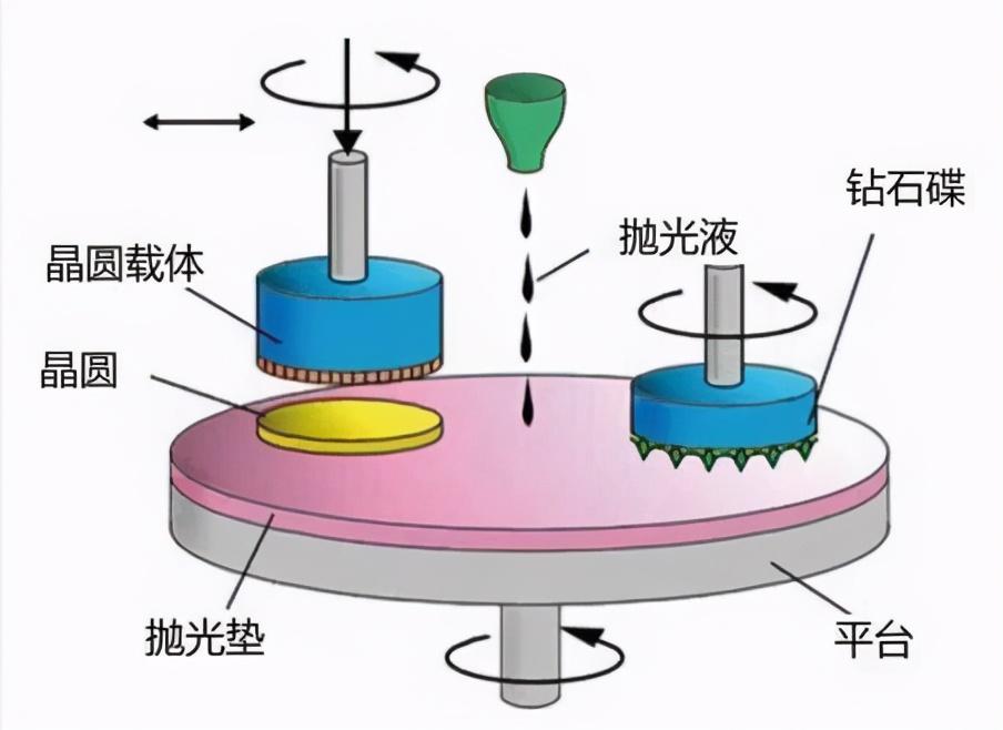 为了实现每层的平整,在芯片制造的过程中,需要进行总共数十次抛光。这可不是普通的抛光,而是要实现原子级(10-100nm)平整度的化学机械抛光(CMP),其中要用到的核心材料就是抛光垫。