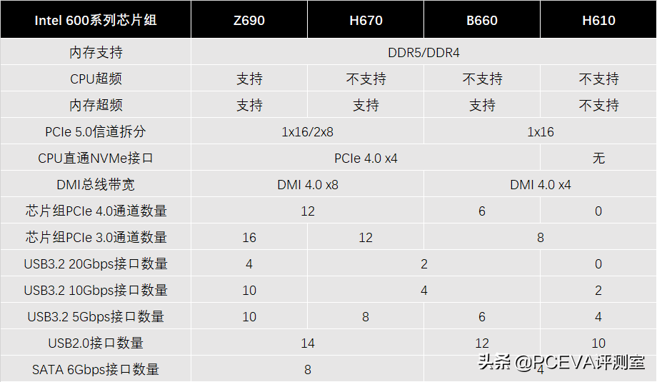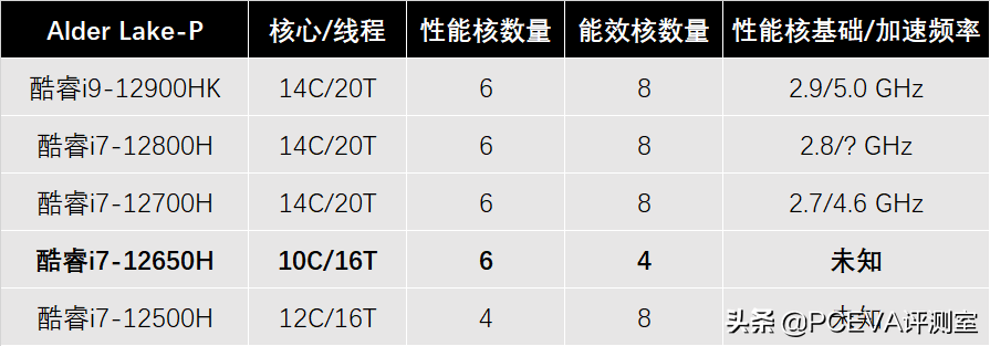 英特尔600系列主板芯片组功能对比,i7-12650H规格曝光